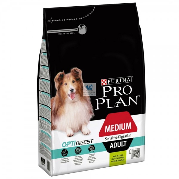 PURINA® PRO PLAN® Medium Adult Sensitive Digestion con OPTIDIGEST® rico en cordero es un alimento seco completo para perros de razas medianas con una digestión sensible.